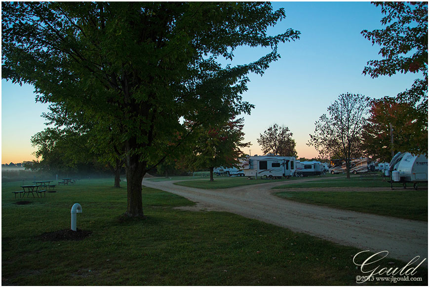 Despite our wanderings, we made it all the way to Springfield, Ohio that evening. I used my phone to google for a campground on our route, chose the most convenient looking one and fed it into the GPS. It ended up being a little ways off the highway, but we didn’t mind- more exploring for us!